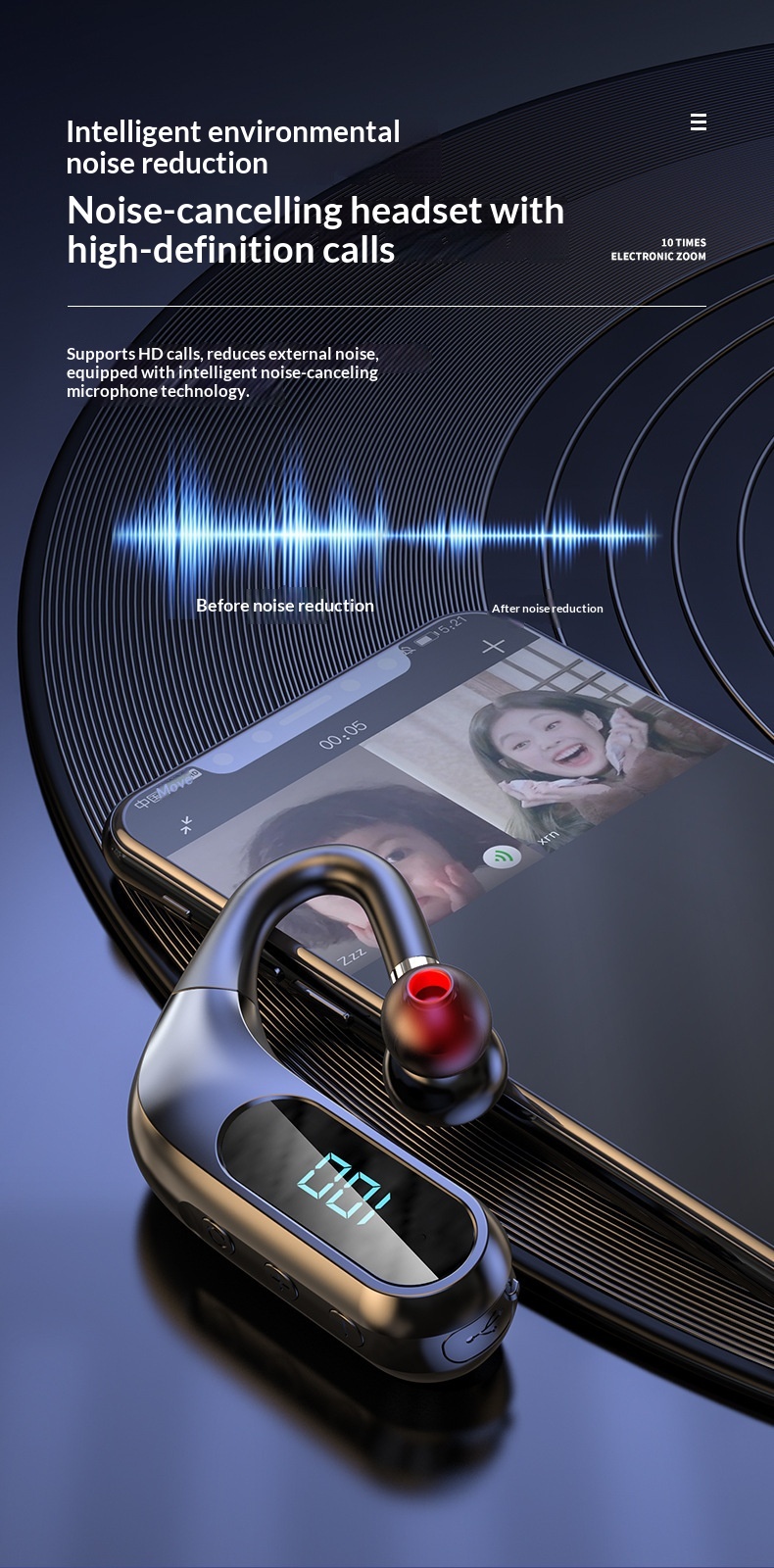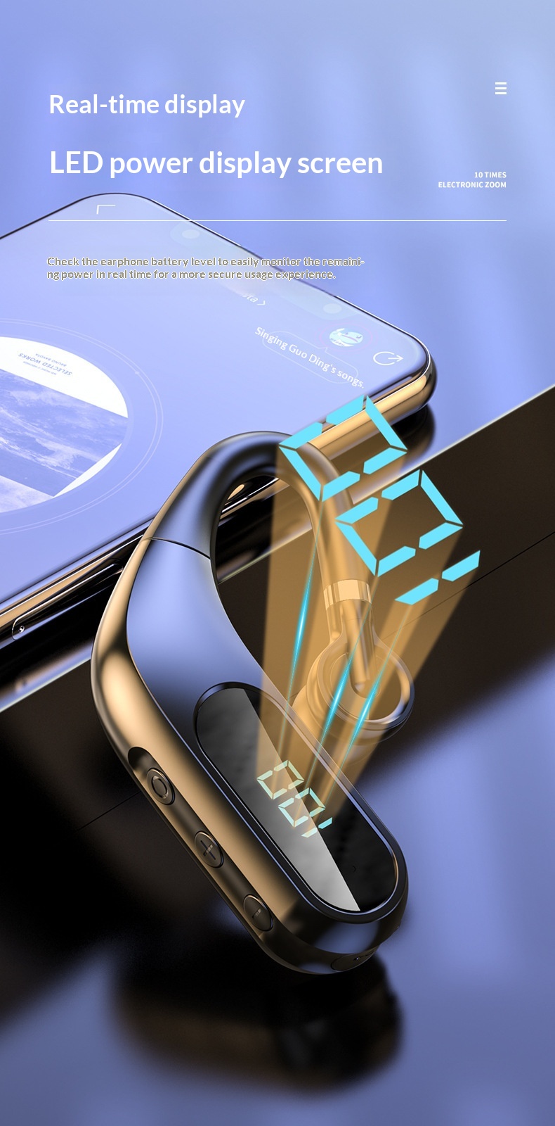 Bluetooth Earbuds With Digital Display Over-ear Design Noise Cancellation And Wireless In-ear For Sports
